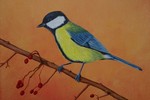 2018Koolmeesje in de herfst. Onderdeel van de serie 'tuinvogels in vier seizoenen'.